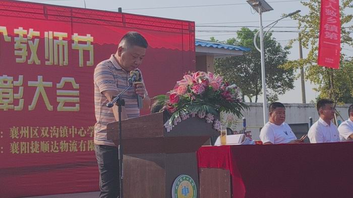 2023年9月8日,襄陽捷順達(dá)物流有限公司總經(jīng)理羅鋒,代表襄陽捷順達(dá)出席雙溝鎮(zhèn)中心學(xué)?!暗?9個教師節(jié)暨開學(xué)典禮表彰大會”。